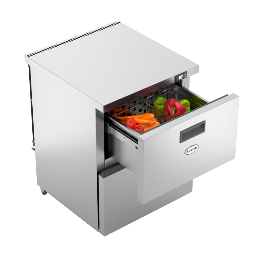 - Highly efficient A+ rated two drawer undercounter cabinet gives simple access to inventory.