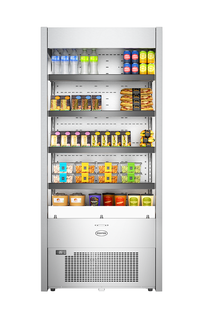 - Les cinq niveaux de présentation de la vitrine de présentation MULTIDECK PRO Foster maximisent la capacité de stockage et réduisent le besoin de réapprovisionnement fréquent.
