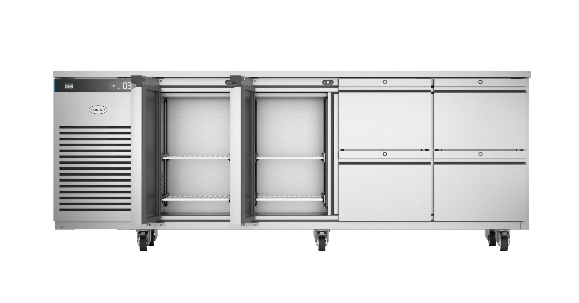 - De G3 werkbanken houden uw voedsel langer vers, doordat bewaren en bereiden vlak bij elkaar plaatsvindt. De G3 werkbanken worden afgestemd op jouw behoeften en bieden ongeëvenaarde flexibiliteit en kwaliteit.